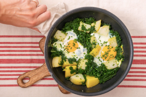 Brambory, vajíčka, špenát, pažitka. Z pár základních a levných surovin vykouzlíte lahůdku pro celou rodinu. Recept najdete zde.